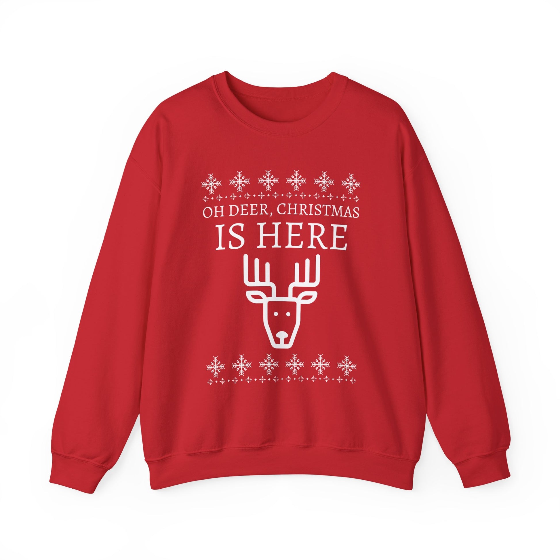 Christmas Reindeer Sweatshirt (Unisex sizing) - "Oh Deer, Christmas Is Here" Holiday Crewneck