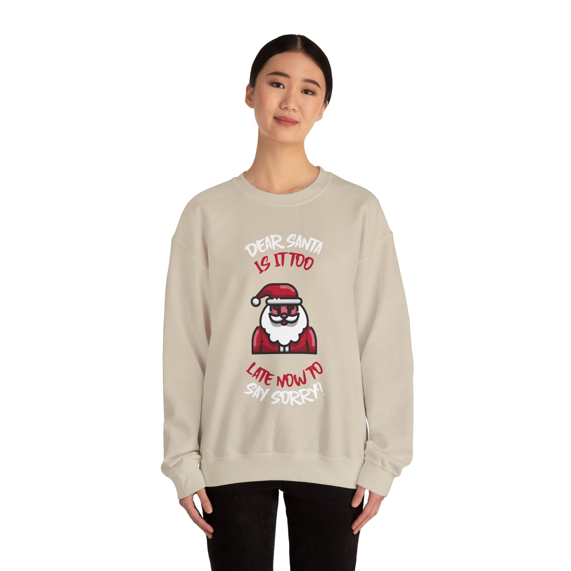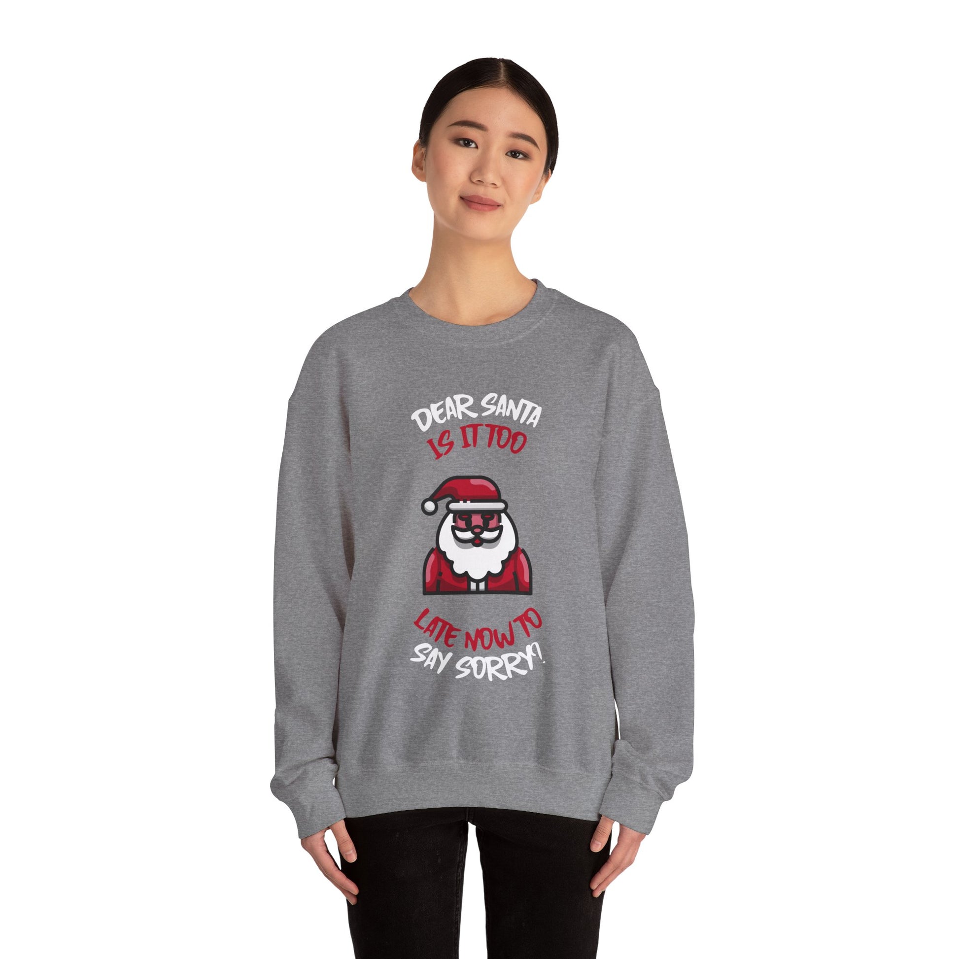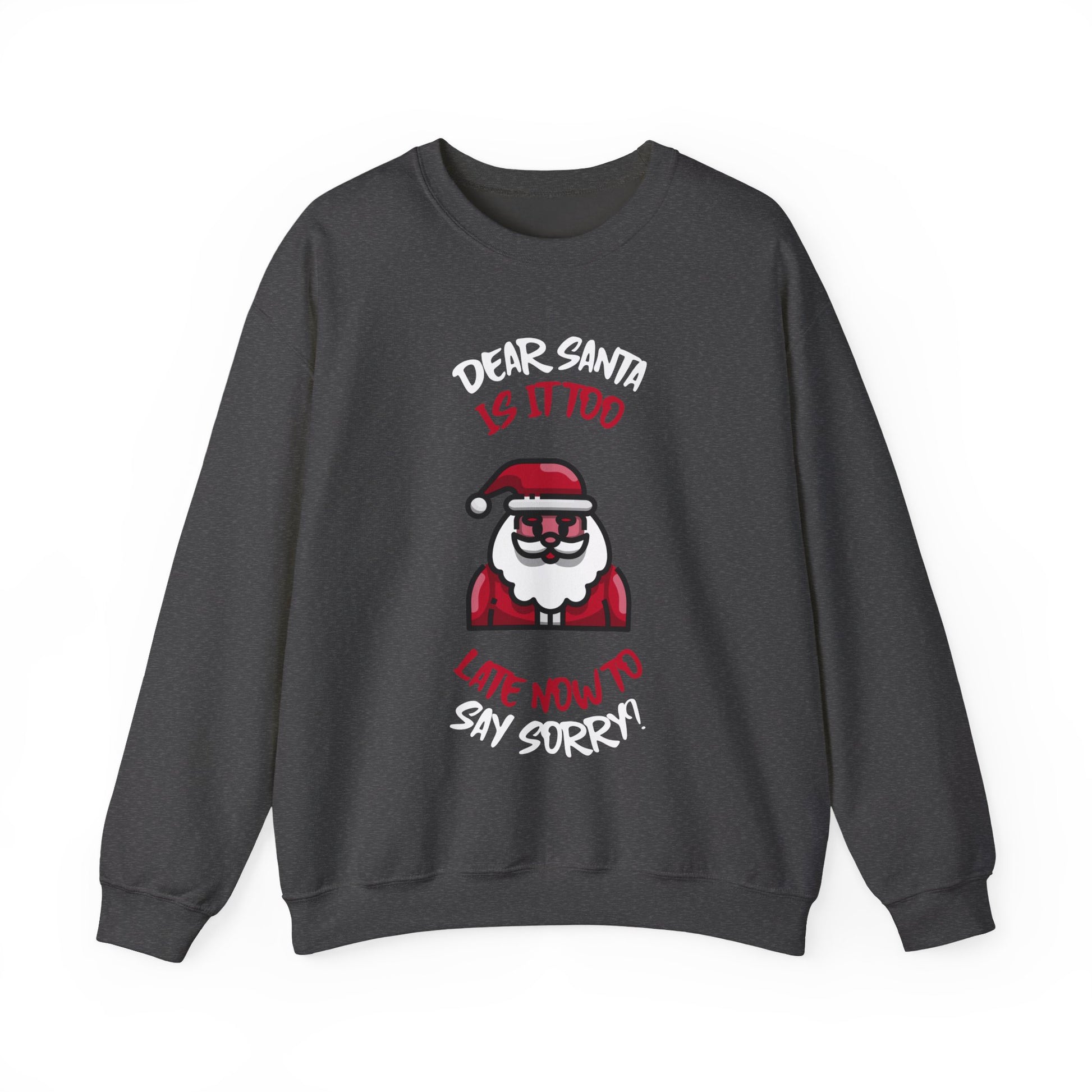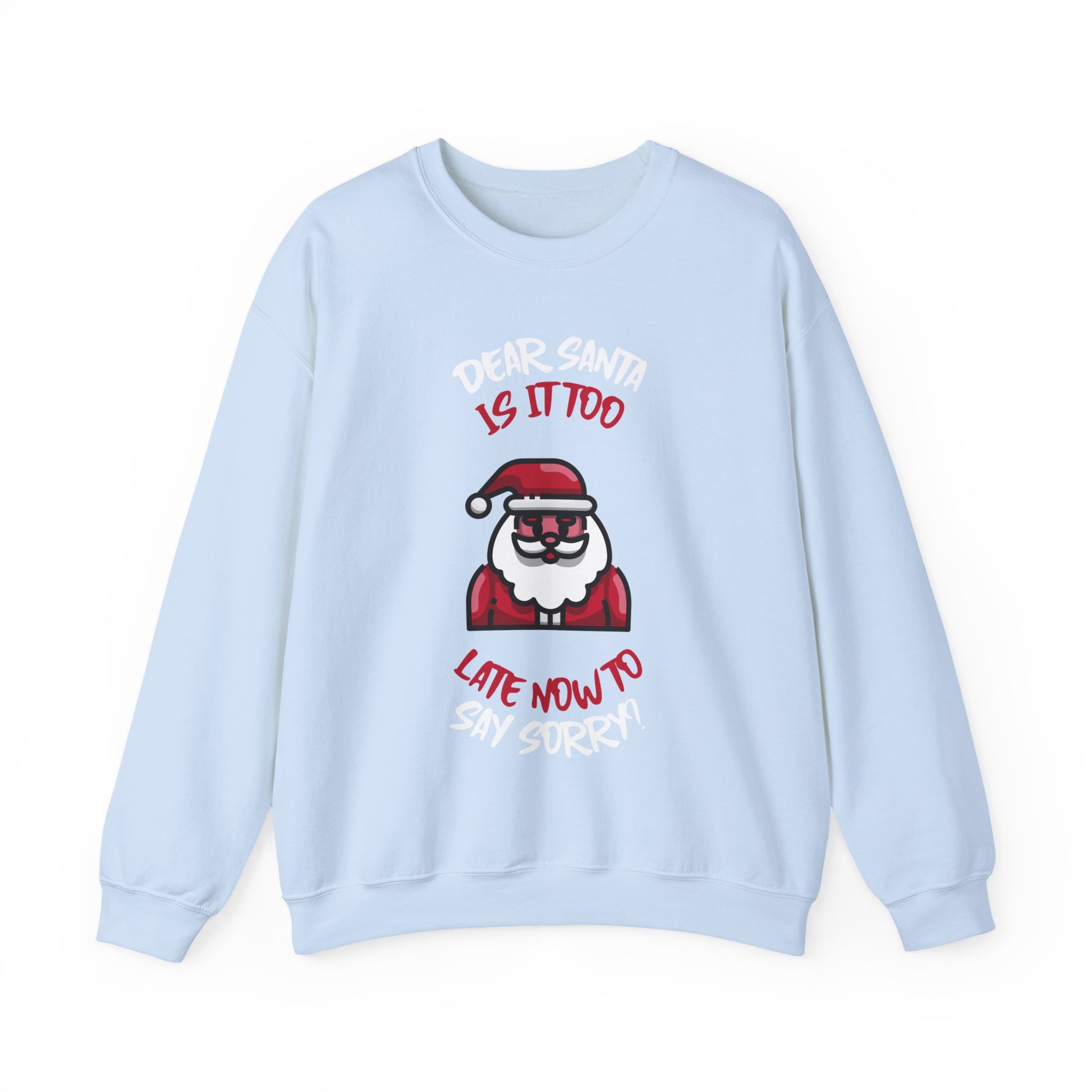 Christmas Sweatshirt (Unisex Sizing) — "Dear Santa Is It Too Late Now To Say Sorry?" Funny Santa Crewneck