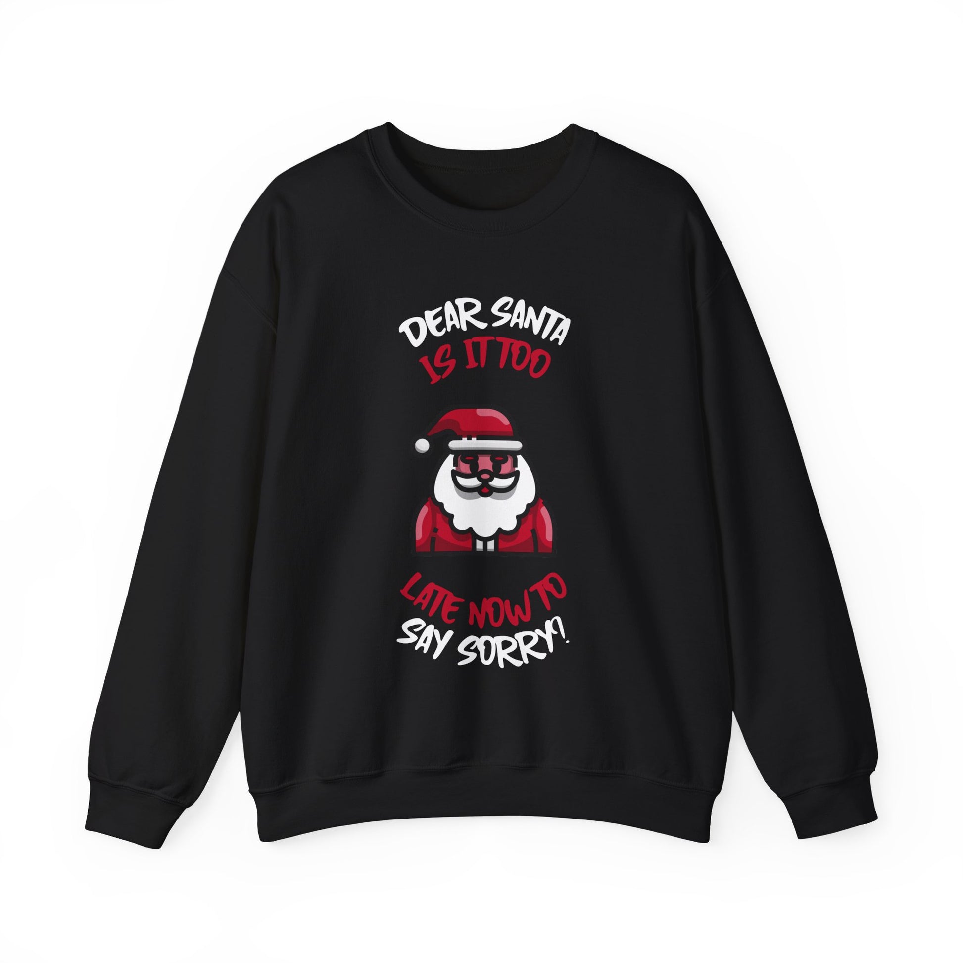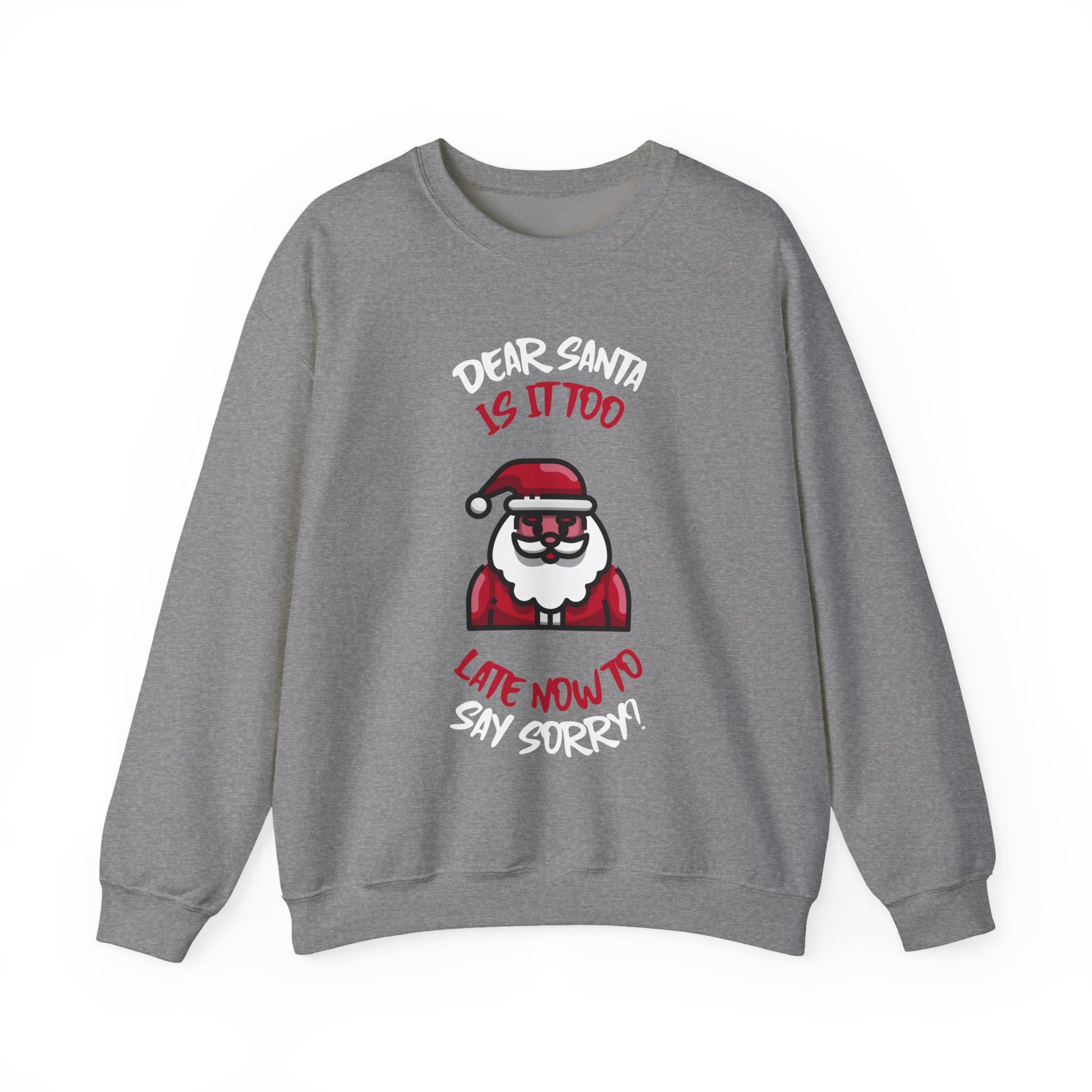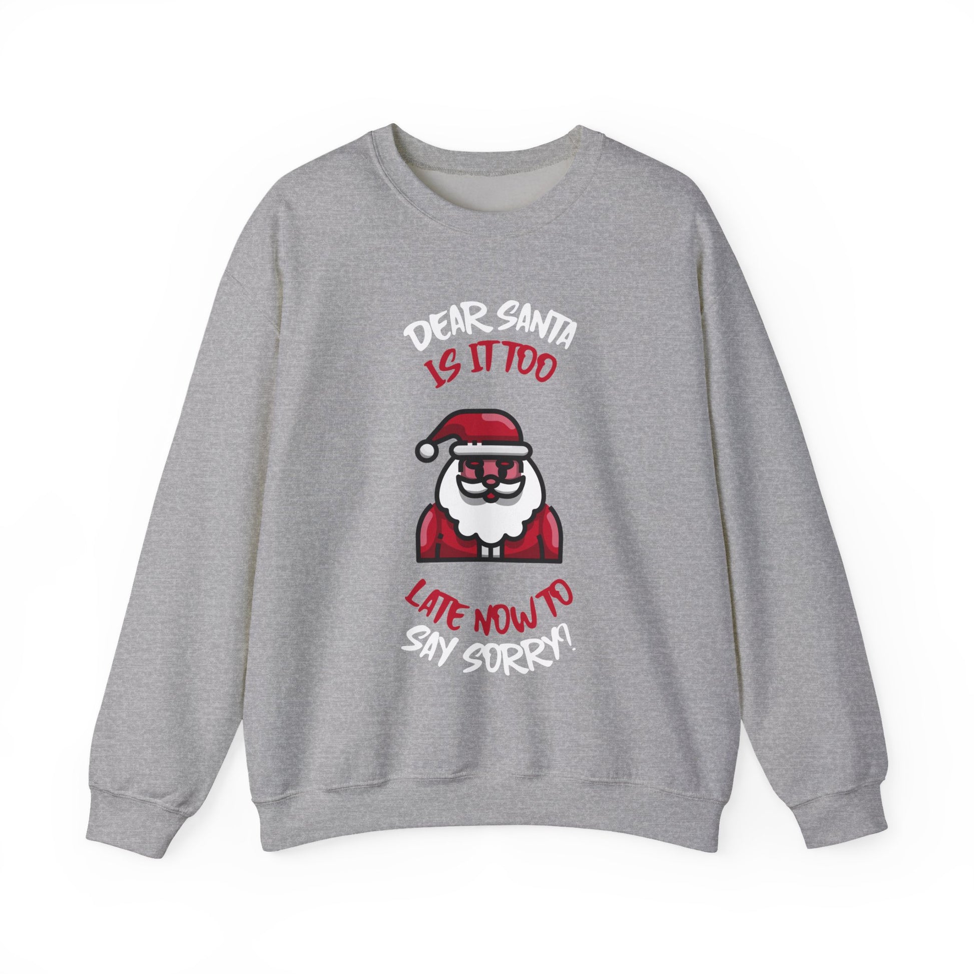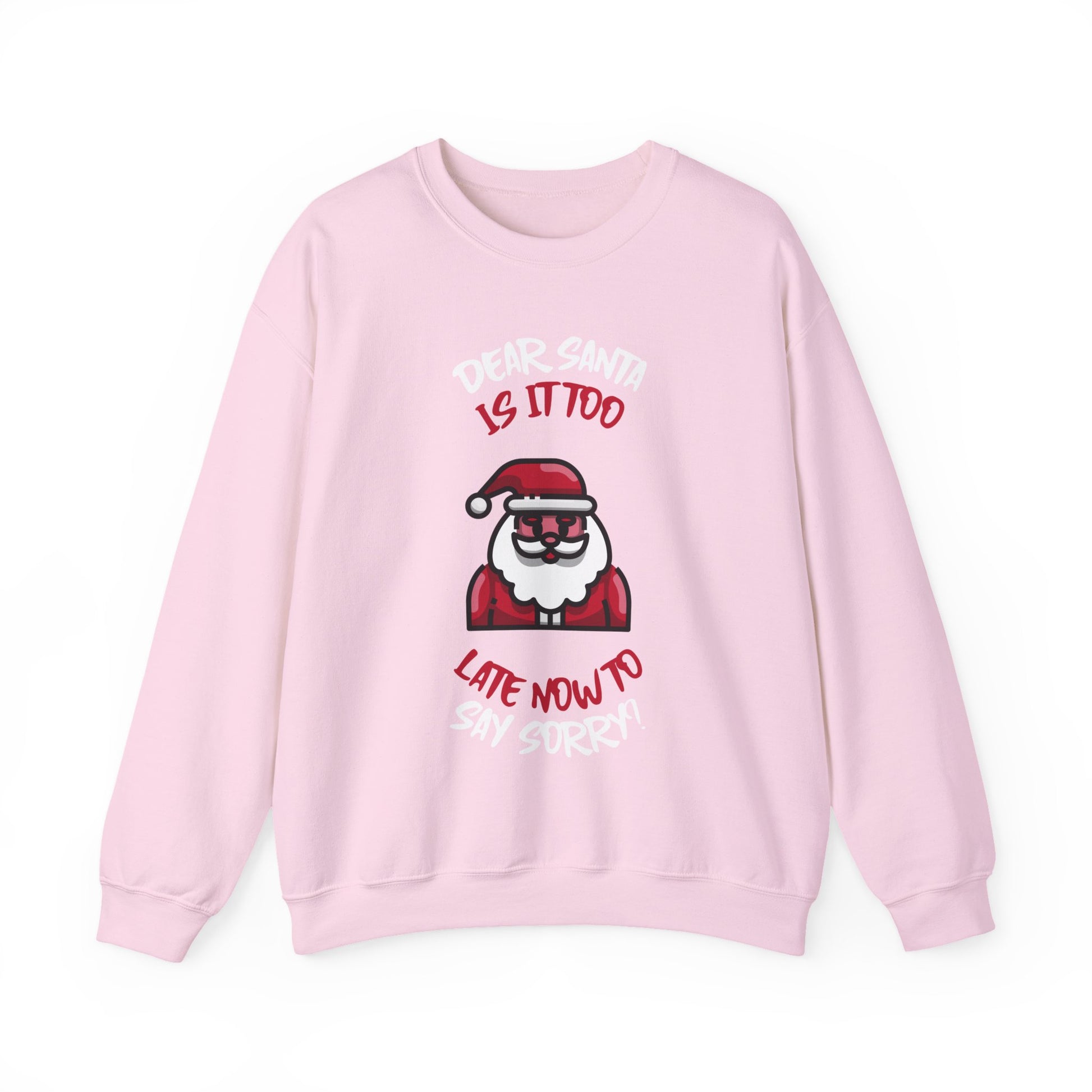 Christmas Sweatshirt (Unisex Sizing) — "Dear Santa Is It Too Late Now To Say Sorry?" Funny Santa Crewneck