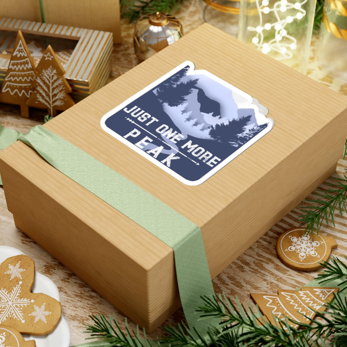 Just One More Peak Sticker — Mountain Adventure Kiss-Cut Decal