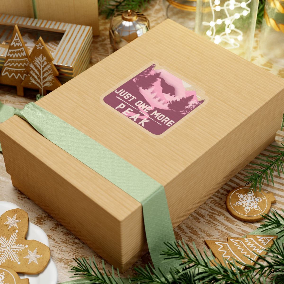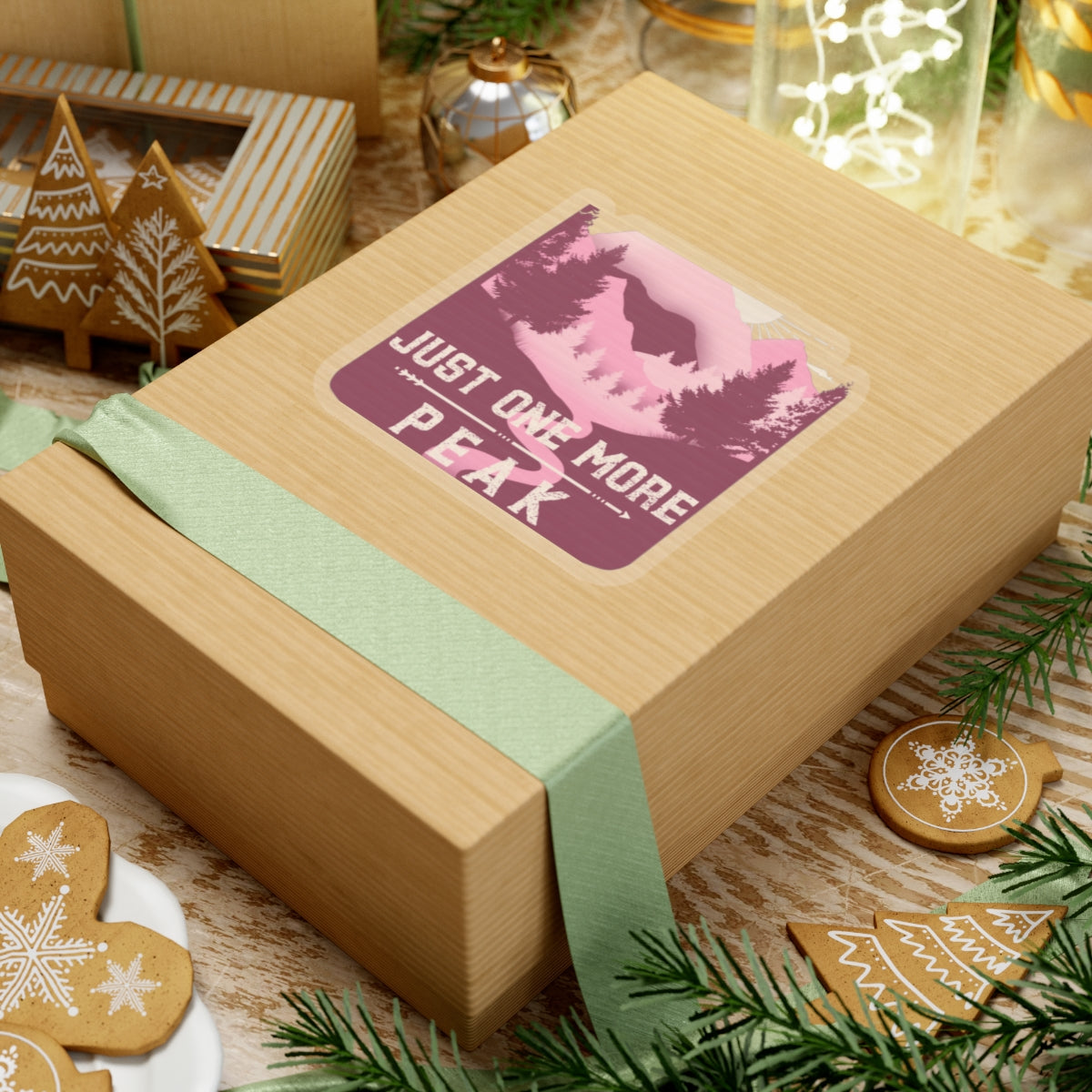 Just One More Peak Sticker — Mountain Hiking Kiss-Cut Decal (Pink)