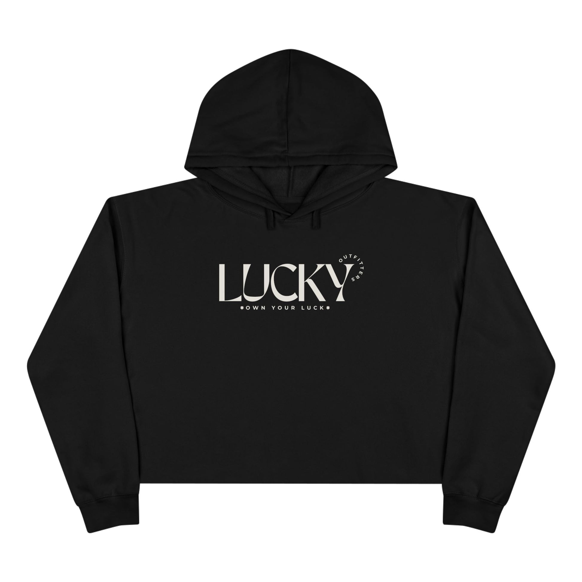 Women's Lucky Outfitters Crop Hoodie — ‘Off White Logo