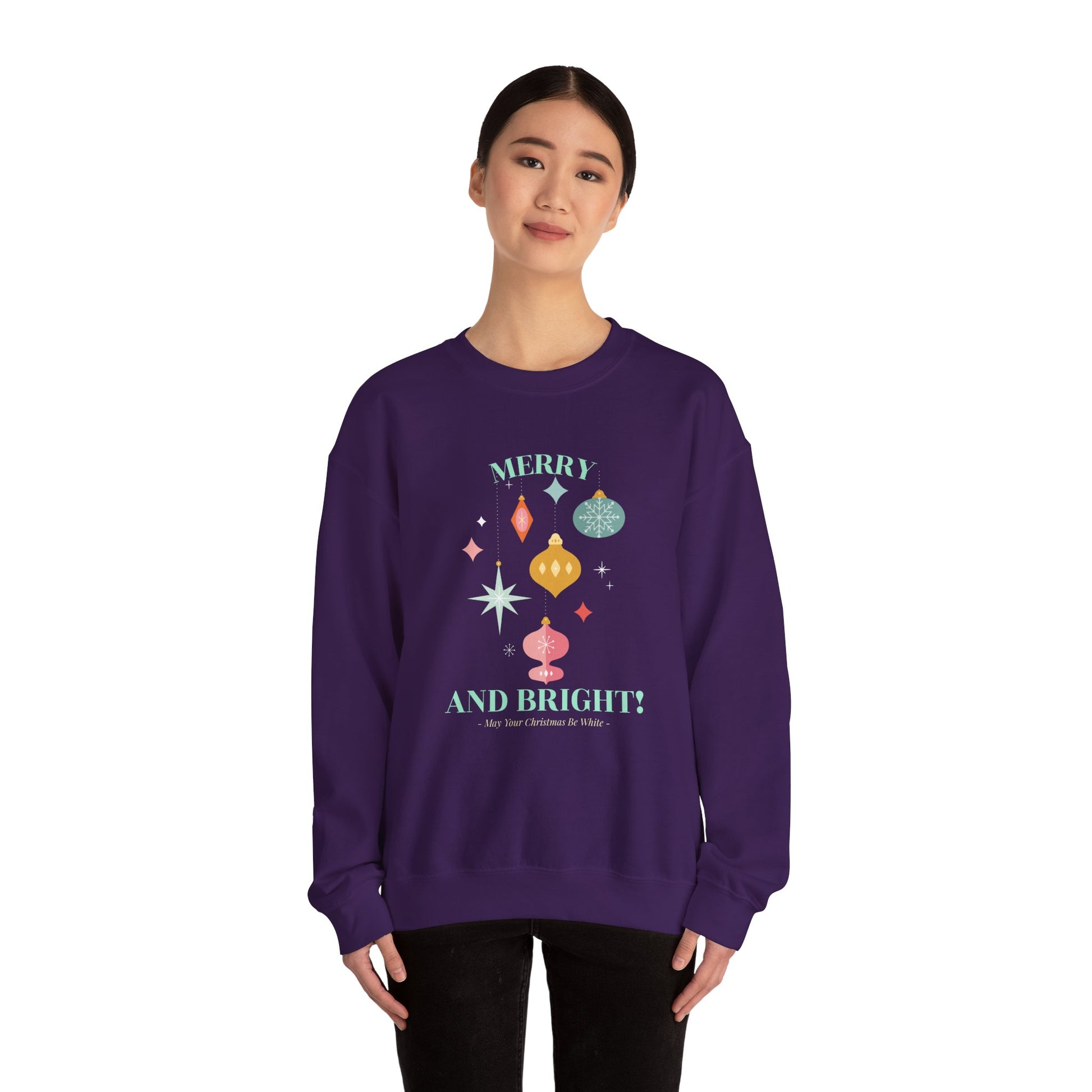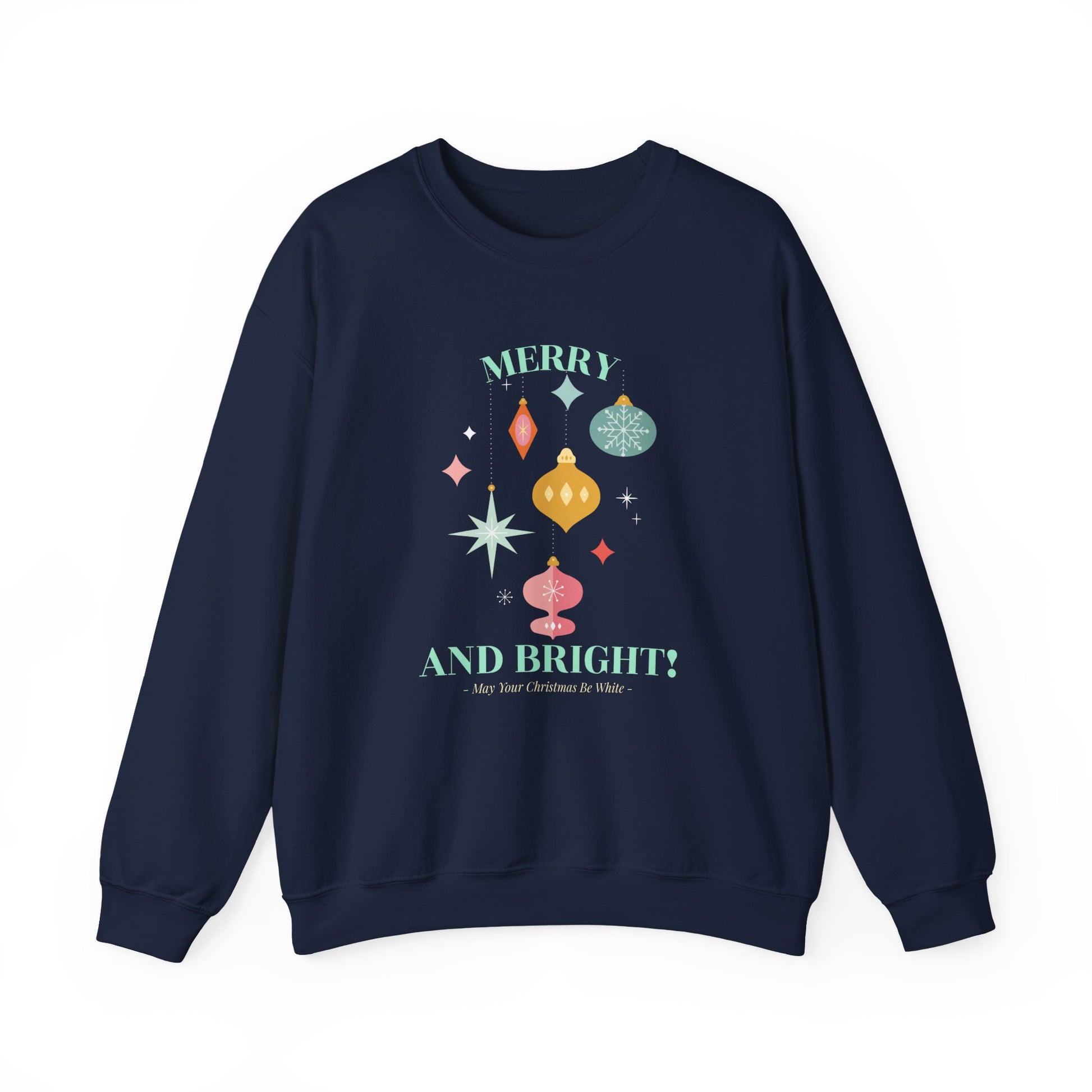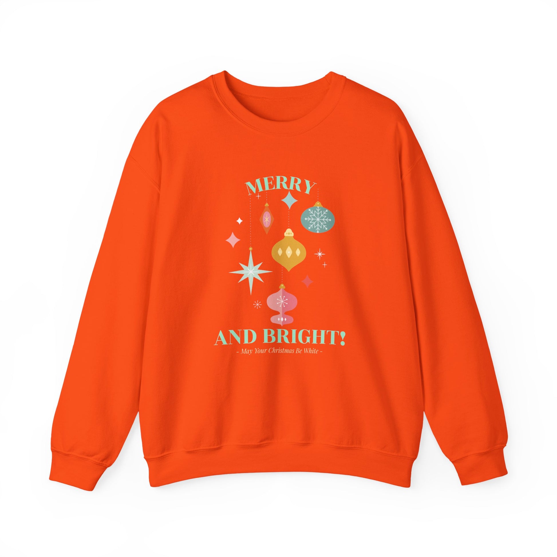 Merry and Bright Christmas Crewneck Sweatshirt (Unisex Sizing) — Retro Ornaments Holiday Sweater